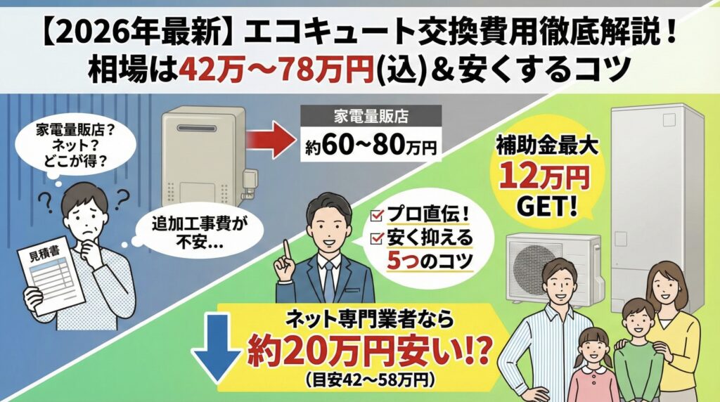 【2026年最新】エコキュート交換の費用相場は?工事費込みの適正価格と安く抑えるコツを全公開
